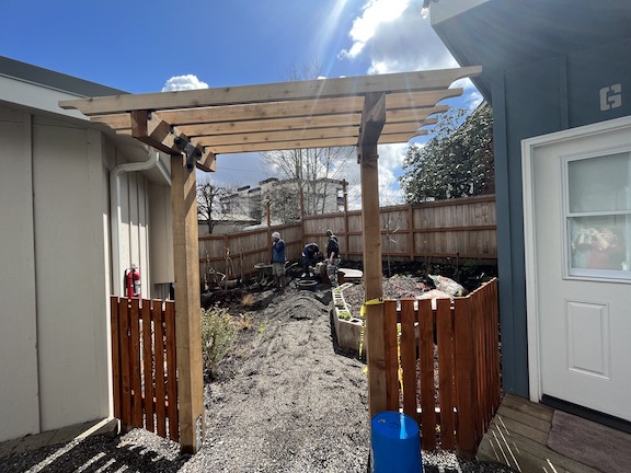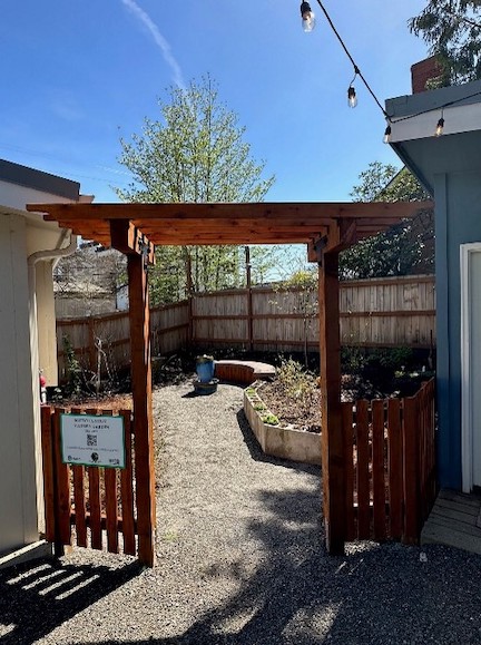 The garden was completed and opened in 2023 and is a place of peace, bringing refuge and rest to the participants of the host Village, a 19-unit transitional housing supportive community led by Do Good Multnomah. At the nearby St. Johns Farmers Market, visitors can sign up to tour the garden on the 4th Saturday of each month throughout the summer.